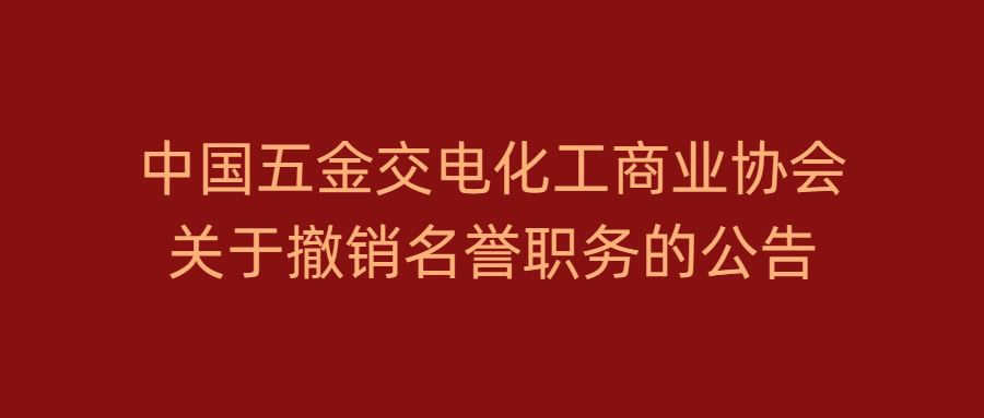中国五金交电化工商业协会关于撤销名誉职务的公告